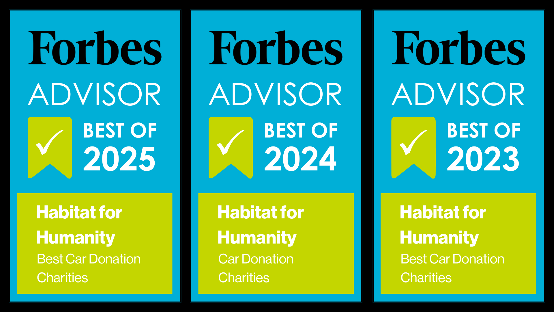 For 3 consecutive years, Forbes Advisor has named Habitat for Humanity’s Cars for Homes program one of the best vehicle donation programs in the nation! This award recognizes the efficiency and impact our vehicle donation program has on our local community. That means, each dollar generated by your vehicle donation helps serve more families right here in our community.